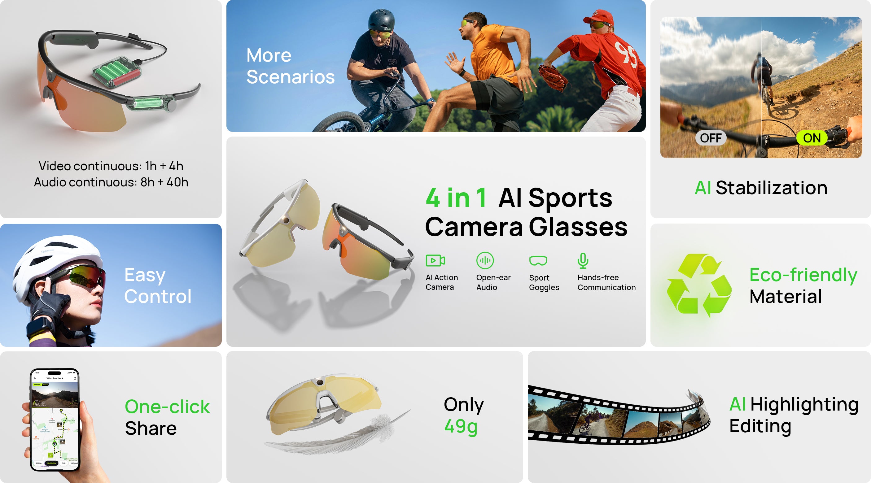 نظارات BleeqUp Ranger AI الرياضية المزودة بكاميرا مع نظارات رياضية احترافية